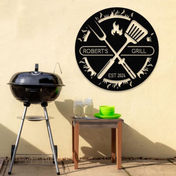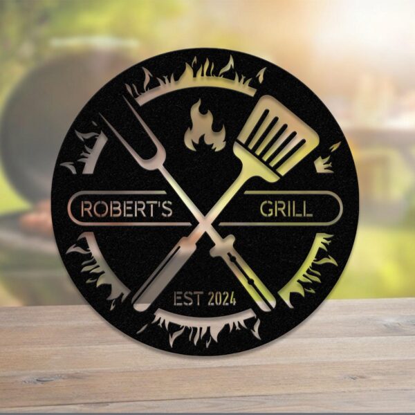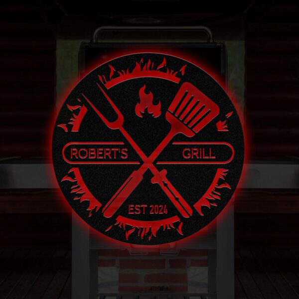 Custom BBQ Sign with Led Light, Personalized Metal Wall Decor, Round Metal Sign, Outdoor Kitchen Wall Art, Backyard Barbeque Sign