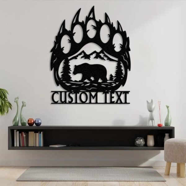 Custom Bear Hand Cabin Sign, Mountain Decor Personalized Metal Bear Sign, Cabin Decor, Outdoor Bear Decor, Rustic Cabin Bear Sign