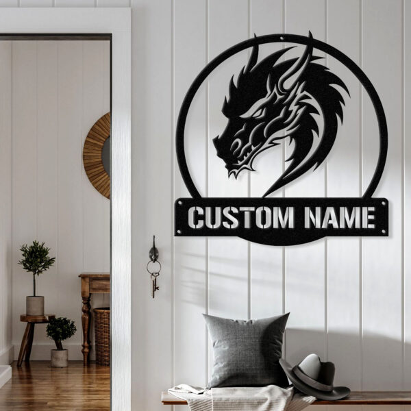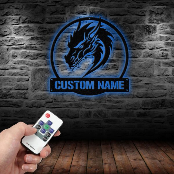 Custom Dragon Metal Art with Led Light, Dragon Name House Sign, Dragon Metal Sign, Boy Room Decor, Dragon Lover Gift, Gaming Room Decor Vs1