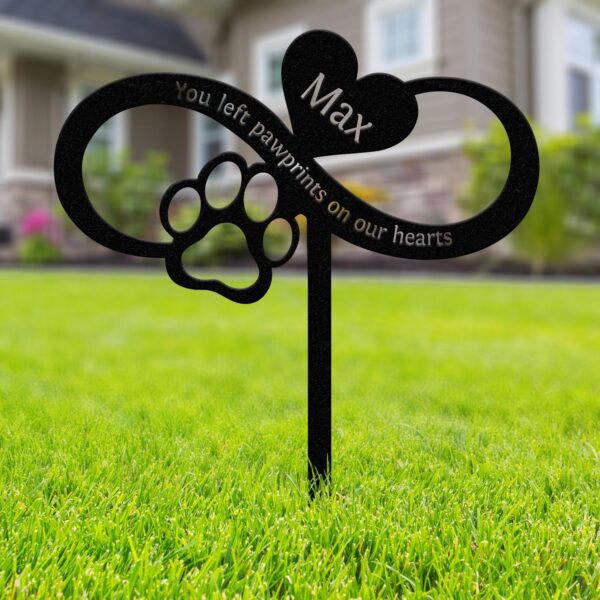 Custom Infinity Dog Garden Stake with Heart and Paw, Metal Garden Sign, Custom Garden Sign, Dog Memorial Sign, Pet Grave Markers