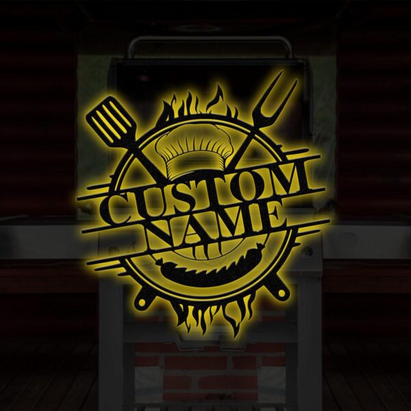 Custom Name BBQ Zone Sign LED Light, Personalized Bar & Grill Sign, Bar Signs, BBQ Signs, Outdoor Kitchen Metal Signs, Patio Decor Vs3