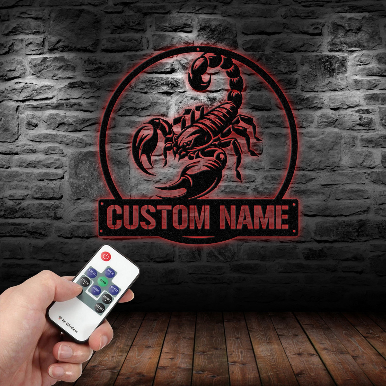 Custom Scorpion Metal Wall Art LED Light, Personalized Scorpion Lover Name Sign, Scorpions Metal Sign, Nursery Decoration Birthday Gift