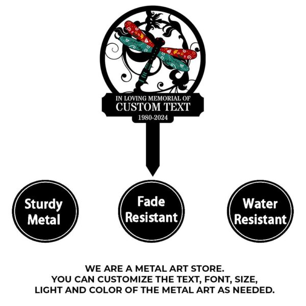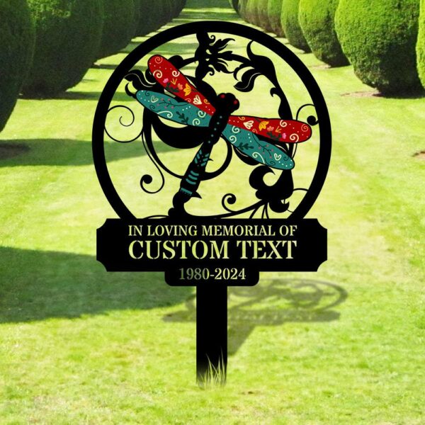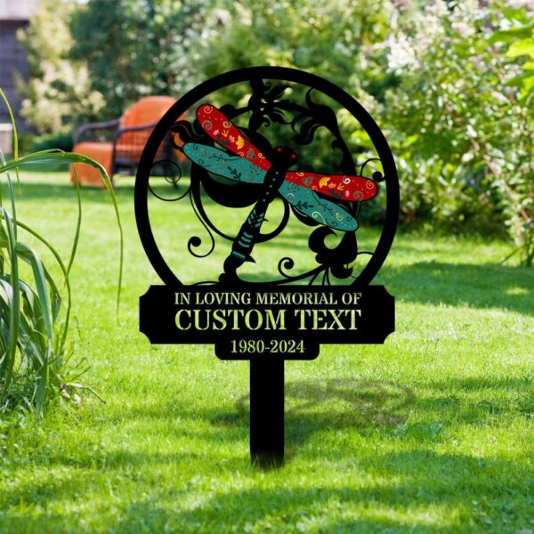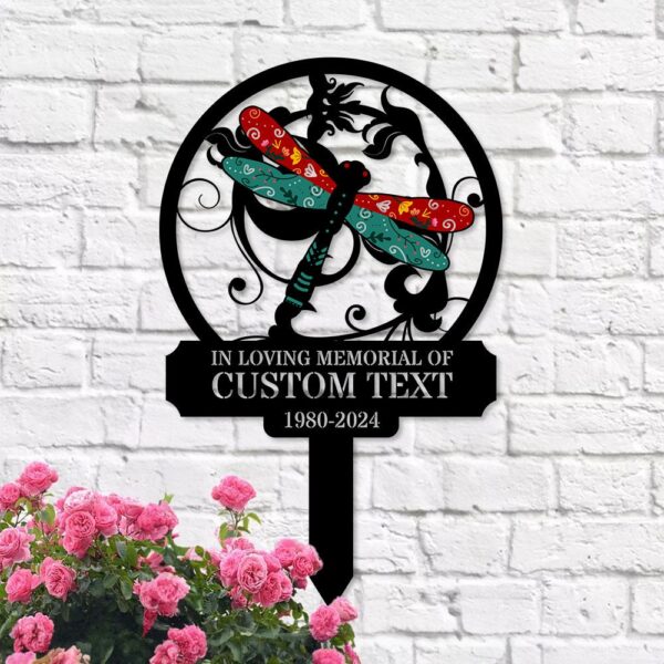 Dragonfly Remembering Plaque with Stake, Personalized Metal Garden Marker, Memorial Metal Sign, Sympathy Gift, Grave Marker, Memorial Stake