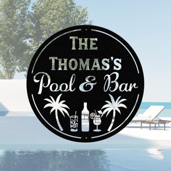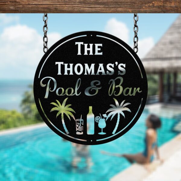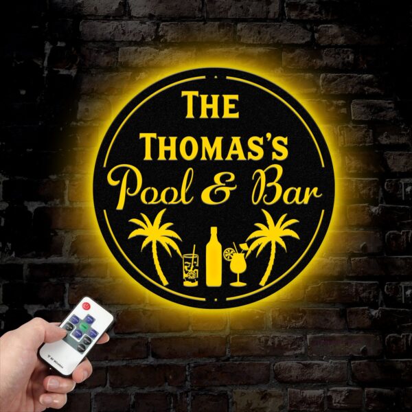 Personalized Backyard Pool Metal Sign LED, Outdoor Wall Decor, Pool Signs for Outdoor Personalized, Custom Backyard Oasis Sign Patio Decor Vs1
