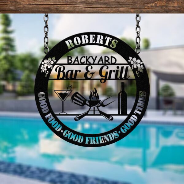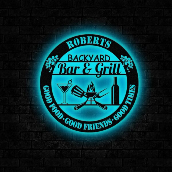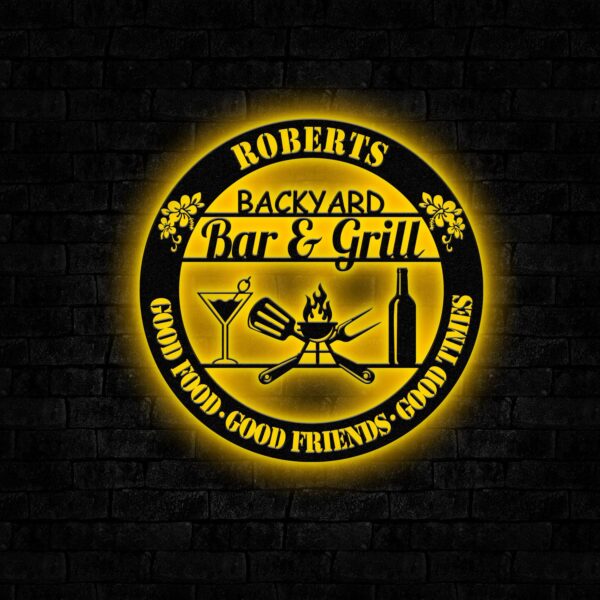 Personalized Backyard Sign LED Light, Custom Bar & Grill Sign, Metal Sign, Bar Signs, BBQ Signs, Bar Sign, Outdoor Kitchen Metal Signs Vs3
