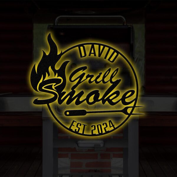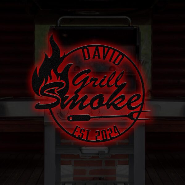 Personalized Metal Barbecue Wall Sign with Led Light, Custom Grill Sign, Barbecue Sign for Outdoor, Large BBQ Sign, Barbecue Wall Art Decor Vs8