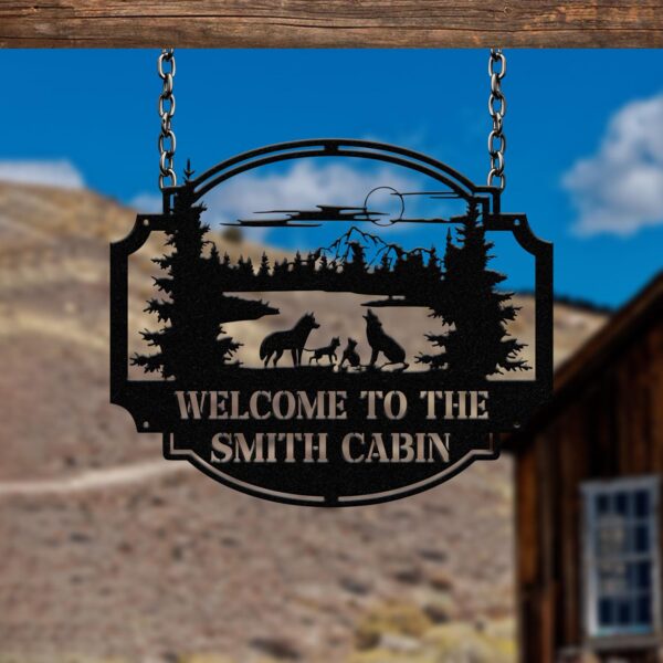 Personalized Wolf Howling Metal Cabin Sign, Custom Wolf Name Sign, Great Outdoor, Weatherproof Sign, Farm Sign, Custom Metal Cabin Sign